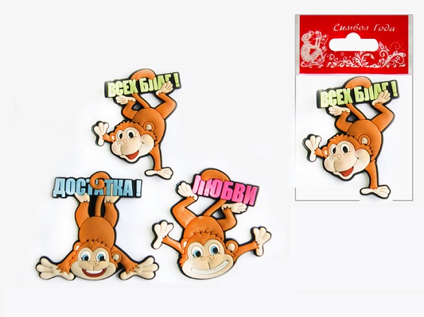 Магнит-резина CG10909A "Обезьянка с пожеланиями", 4,5*6,5 см, асс.